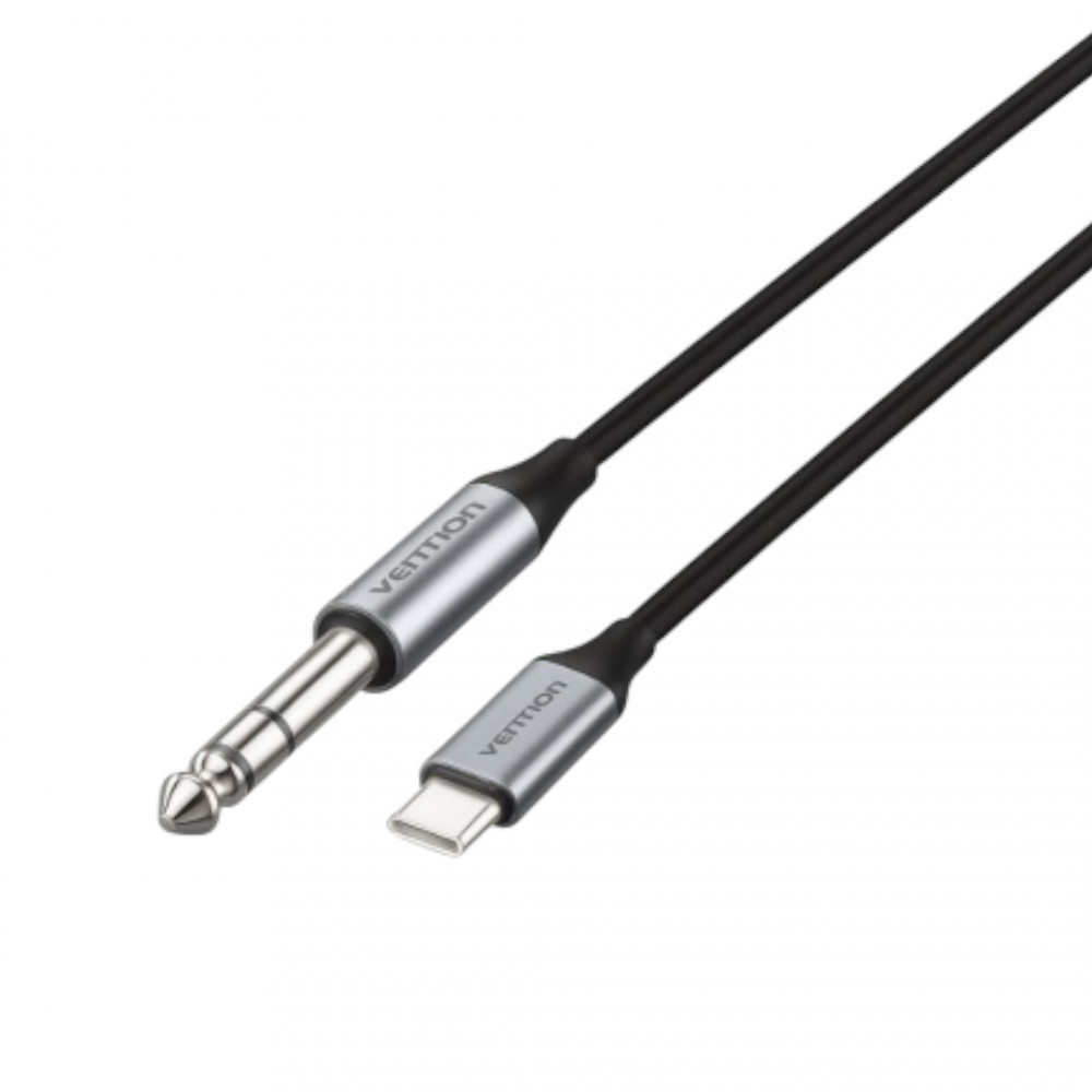 Câble USB‑C vers jack 6,35 mm Vention (1 m) pour relier un appareil USB‑C à un équipement audio avec prise jack 6,35 mm.